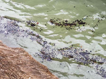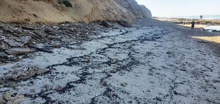 ولم يتم بعد الجزم بشأن مصدر التلوث ولماذا لم يتم الانتباه له إلا بعد انتشاره بشكل واسع. ووصلت كميات كبيرة من الكتل إلى الشواطئ.