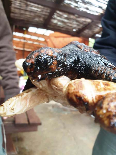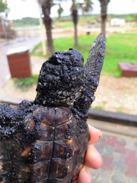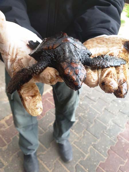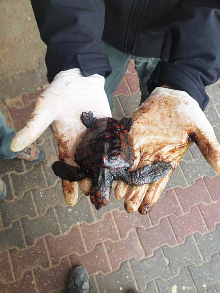 وتم نقل عدد من السلاحف البحرية للعلاج بعد ان علقت بها المواد الملوثة وتسببت لها بأذى كبير، كما تسببت بأذى لكائنات بحرية أخرى.
